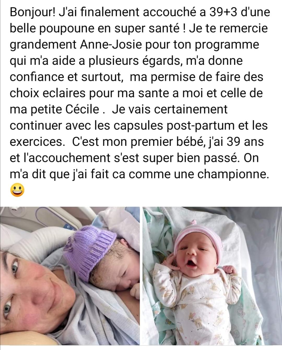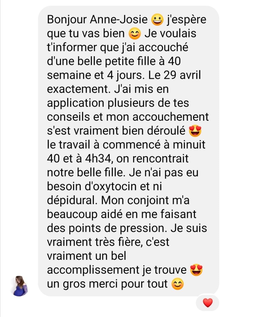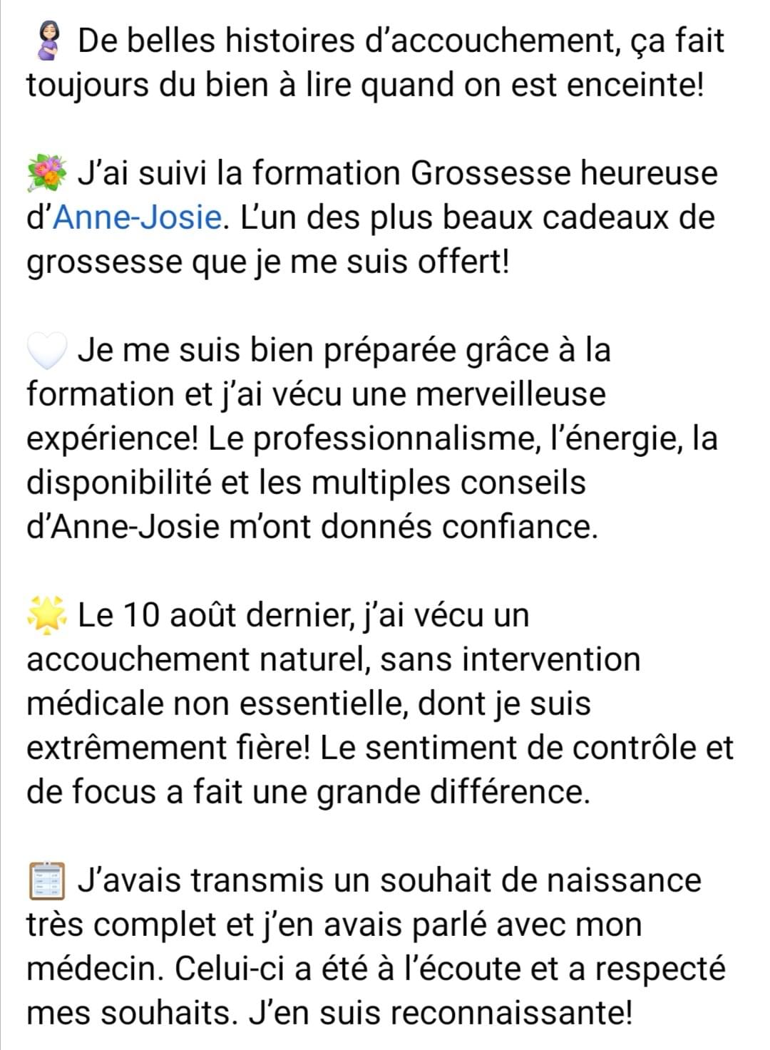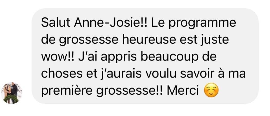 Le programme Grossesse heureuse est là pour t’aider à aborder cette période de ta vie avec sérénité et confiance. Il s'agit d'un programme en ligne te permettant de te préparer physiquement et mentalement pour mettre toutes les chances de ton côté que ton accouchement se passe le mieux possible.