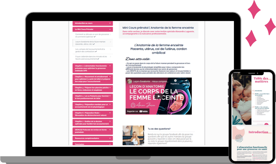 Je t'enseigne en compagnie d'expertes diplômées et renommées toutes les meilleures méthodes qui existent pour améliorer le déroulement de ta grossesse et ton accouchement!